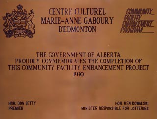 Au coeur du quartier francophone d'Edmonton se dresse un édifice aux allures fantaisistes, semblable à un énorme gâteau de fête sorti tout droit d'un rêve. C'est en février 1990, en plein coeur de l'hiver albertain, qu'a éclos cette drôle de fleur bleue et rose qui a, contre tout attente, réussi à s'épanouir au soleil de la communauté francophone d'Edmonton. Au mois de mai dernier, les employés du Centre culturel Marie-Anne-Gaboury soufflaient en coeur les bougies flamboyantes du gâteau confectionné pour célébrer le dixième anniversaire de cet organisme à but non lucratif. Le Centre attire pourtant encore le regard des passants qui, curieux, se demandent quelle vocation peut bien avoir un tel édifice. Dans cette section, vous pourrez élucider le mystère entourant le Centre culturel Marie-Anne-Gaboury en en apprenant davantage sur sa mission, ses objectifs et ses réalisations ainsi que les associations qui ont fondé le Centre. Des entrevues vous permettront également de mieux comprendre comment le Centre culturel Marie-Anne-Gaboury est devenu réalité.
