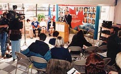 - Plusieurs conférences de presse y ont eu lieu. L'une des plus importantes a été la conférence de presse, tenue le 3 avril 2000, au cours de laquelle a été annoncée la programmation du festival J'avions le goût de fêter! célébrant le dixième anniversaire du Centre culturel Marie-Anne-Gaboury.